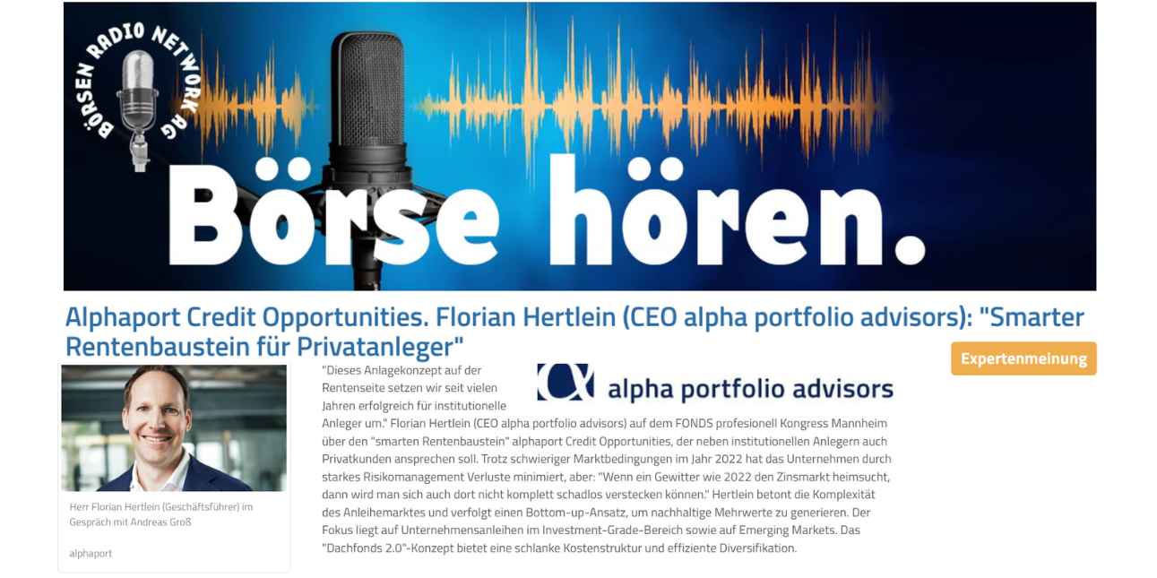 "Smarter Rentenbaustein für Privatanleger" – Florian Hertlein im Gespräch mit dem Börsen Radio